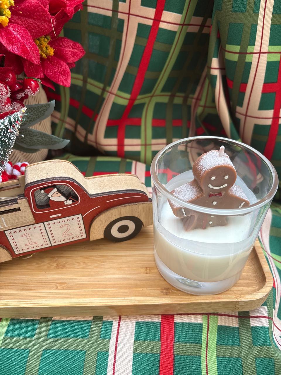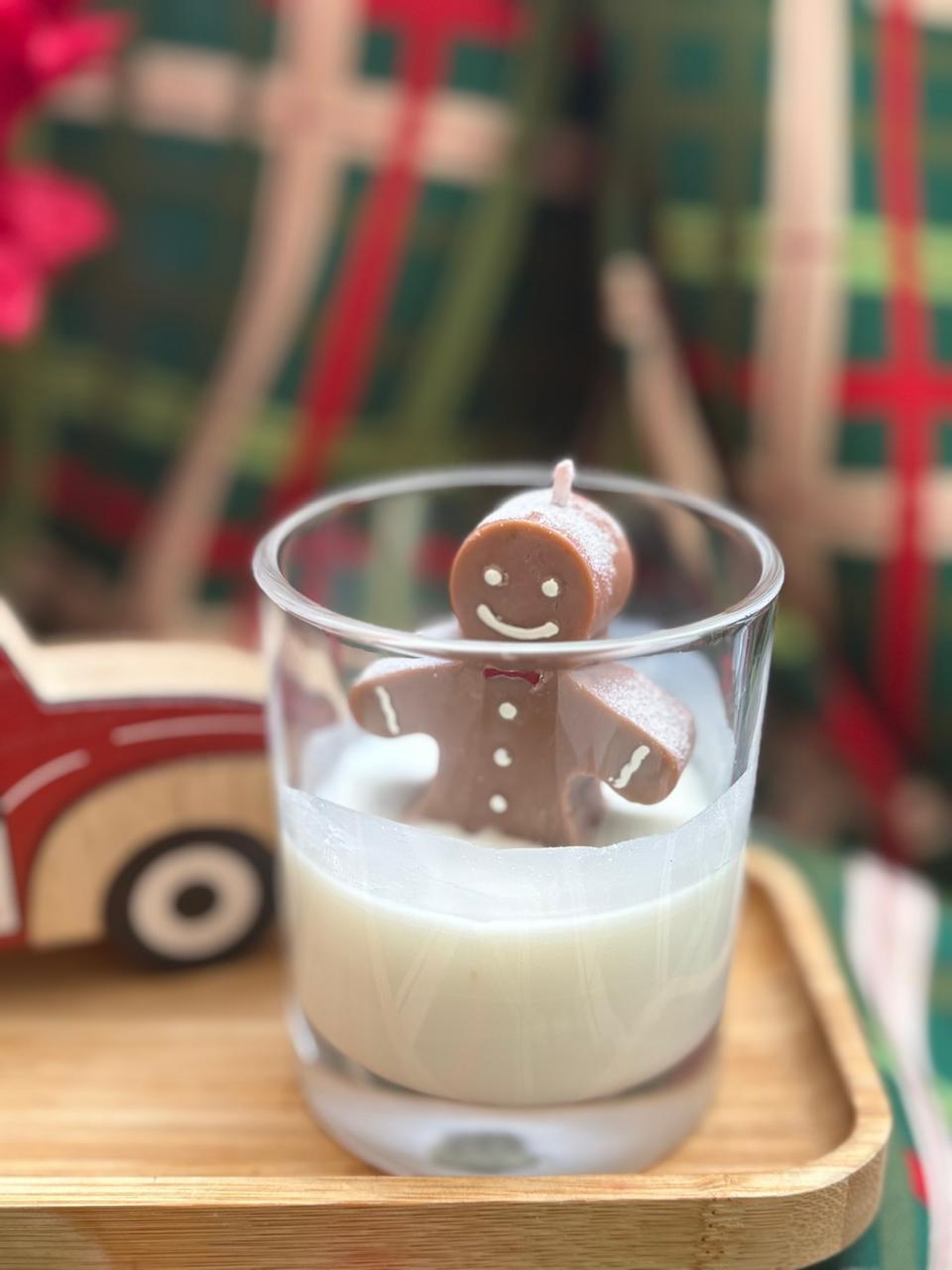 A vela Ginger na neve chega com detalhes em brilho imitando a neve e um lindo biscoito, refletindo a magia do natal e delicadeza que definem a Ella.